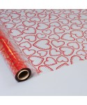 Embolcall de cel·lofana transparent estampat, amb disseny de CORS VERMELLS REPUNTATS. Paper de regal, per a flors i plantes en format polipropilè transparent. Cel·lofana d'alta qualitat.