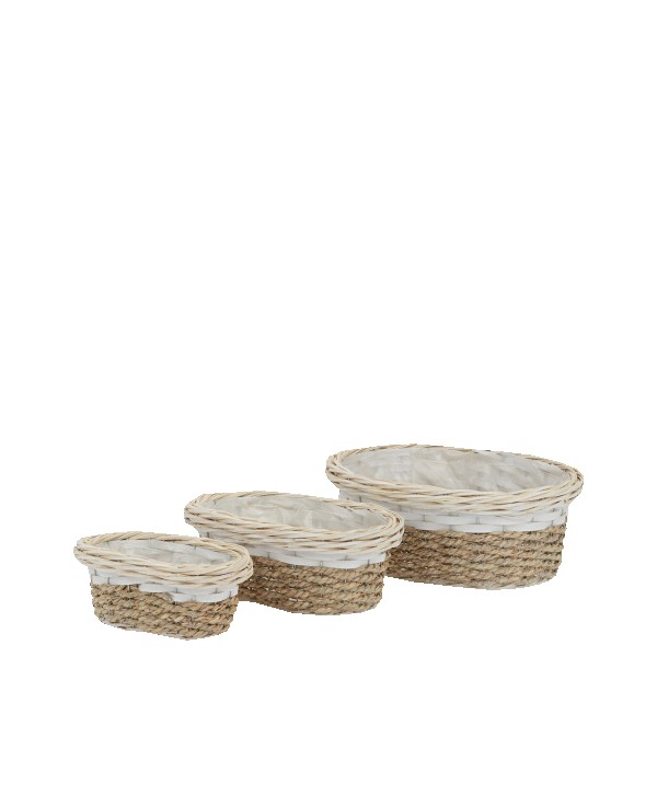 Descripció: Cistella ovalada de vímet blanca, amb la vora gruixuda i reforçada amb filferro. Ideal per a plantes, composició amb flors. Cistelles de floristeria.