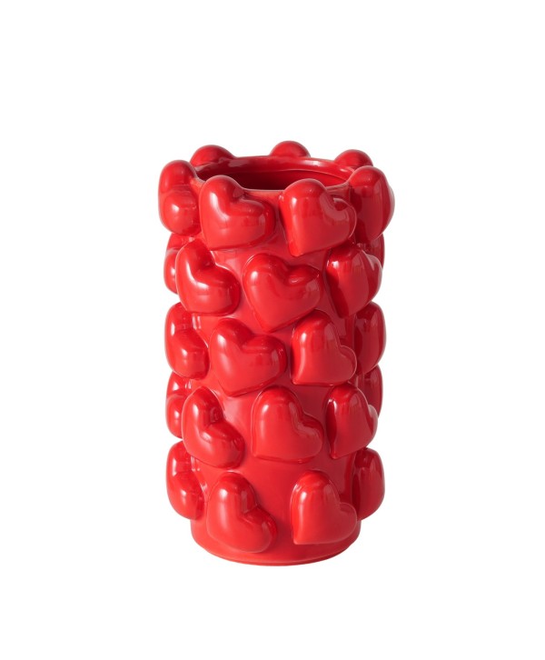 Descripció: Gerro de ceràmica HERZEN vermell, amb cors en relleu i pintat a mà. ideal per a decoracions de Sant Valentí. Decoracions amb cors brillants.