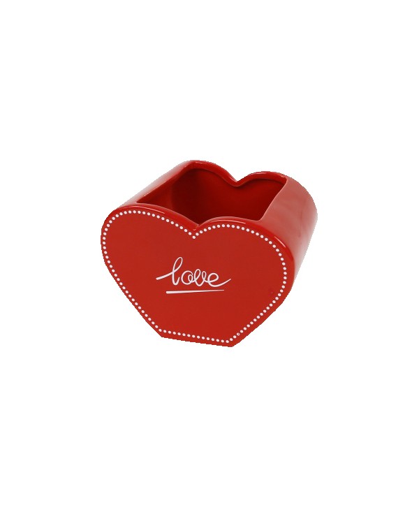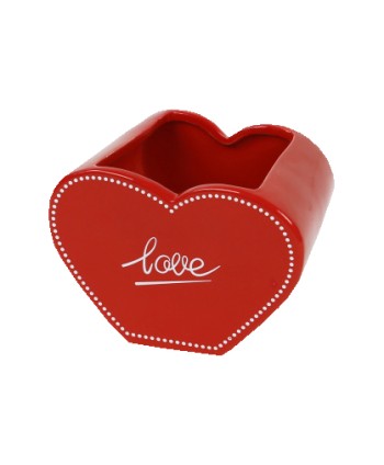 Descripció: Cor de ceràmica vermell amb la paraula LOVE en blanc, ideal per a decoracions de Sant Valentí. Cor brillant en to vermell.