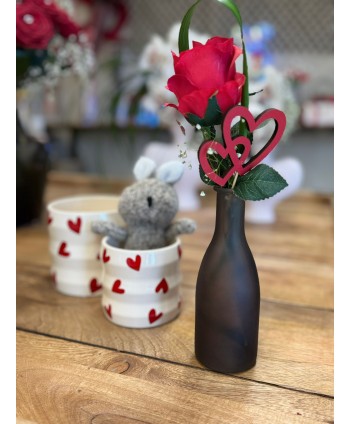Elegant test de ceràmica blanc amb cors vermells. Testos per complementar plantes de regals de Sant Valentí. Ideal per testos ES9cm.