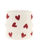 Elegant test de ceràmica blanc amb cors vermells. Testos per complementar plantes de regals de Sant Valentí. Proveïdors majoristes de complements per a floristeries i comerços del sector de la decoració. Proveïdors de tests de ceràmica de qualitat per a plantes.