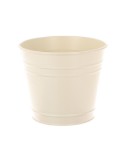 Galleda de zinc amb relleu de ratlles, de color crema. Galleda de zinc per a plantes. Galleda de metall amb nansa. Proveïdors de tests i complements per a floristeries i altres comerços.