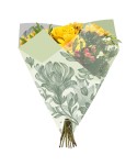 Hoja de papel celofán COREANO con decoración del borde verde para ramos de flores. Papel impermeable y muy resistente. Lámina práctica para la composición de bouquets de forma fácil y rápida. Envoltorio para la floristería y mayorista de flor cortada.