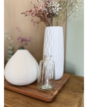 Jarrón PRAAG con rayas en relieve para flores y plantas. Jarrón de floristería. Proveedor Jarrones de Cristal para flores. Cristal de floristería para flores y plantas. Cristal para decoración de bodas y eventos. Proveedor de floreros de cristal de floristería y Wedding Planners.