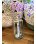 Originales botellas de cristal. Ideal para decoración de bodas, eventos, restaurante. Botella pequeña con cuello alto decorativa. Botella de cristal pequeña transparente con cuello alto. Proveedores al mayor de botellas y garrafas de cristal. Decoración con elementos de cristal.
