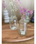 Botella surtido en cristal liso y cristal grabado en color transparente. Proveedor Cristal de floristería, Cristal para Decoración de Bodas, eventos. Botellas de cristal Originales, Botellas decorativas al mayor.