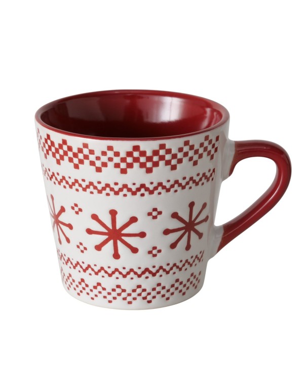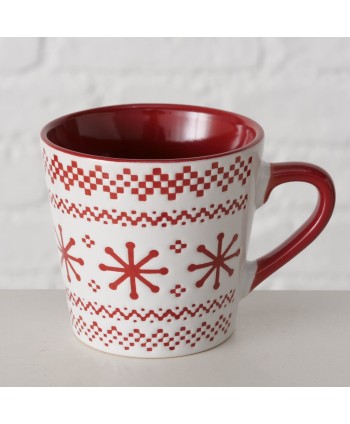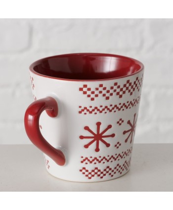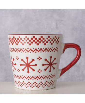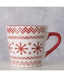 TAZA DE CERÁMICA "SNOWFLAKY" BLANCA Y ROJA Ø 8 x H 7,5cm.