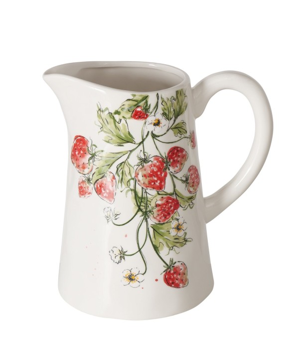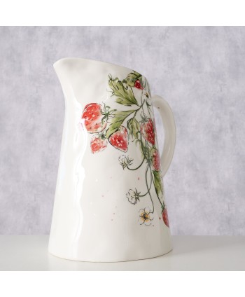 Original jarra de cerámica STRAWBERRY hecha a mano, con fresas en color rojo. Jarras aptas para: alimentos y lavavajillas.