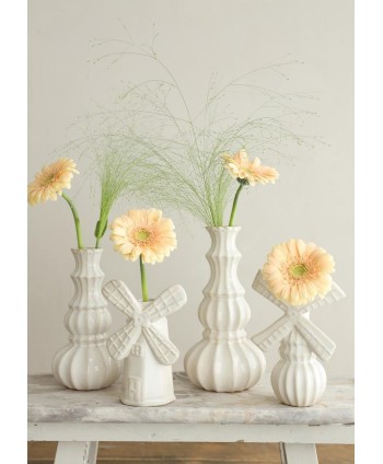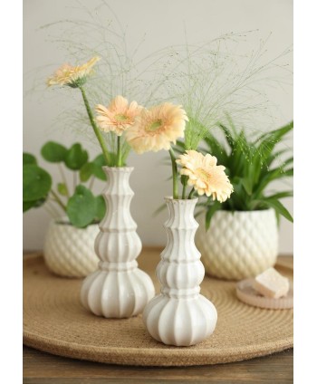 Elegante violetero DELHI de cerámica blanco esmaltado, con formas en relieve. Jarrones minimalistas ideales para flor cortada. Proveedor de violeteros modernos.