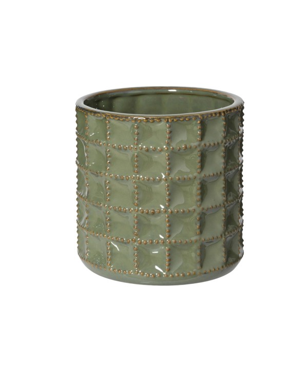 MACETA DE CERÁMICA "CUADROS" VERDE MINT Ø14 x H13cm.