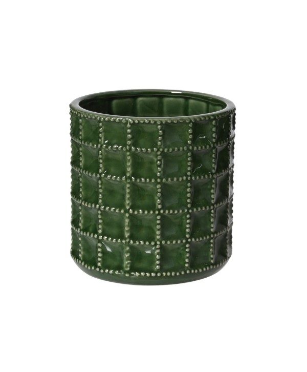 MACETA DE CERÁMICA "CUADROS" VERDE OSCURO Ø14 x H13cm.
