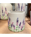 Originales macetas de cerámica hechas a mano, con diseño de LAVANDA y fondo crema. Macetas para decoración de bodas, eventos y composición floral. Macetas de Floristería.