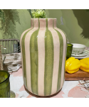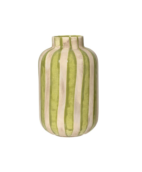 Jarrón de cerámica GINO, en tono blanco y con rayas en relieve. Conjunto de 2 jarrones para combinar entre ellos. Ideal para las decoraciones más originales.