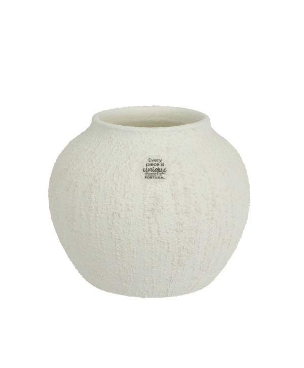 Jarrón redondo de cerámica TERRACOTA BLANCO hecho a mano, de textura arenosa mate. Ideal para las decoraciones más originales.