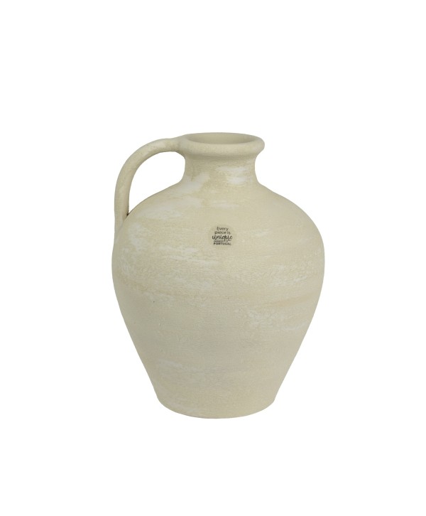 JARRA DE CERÁMICA REDONDA CREMA CON ASA Ø25 x H30cm.