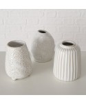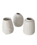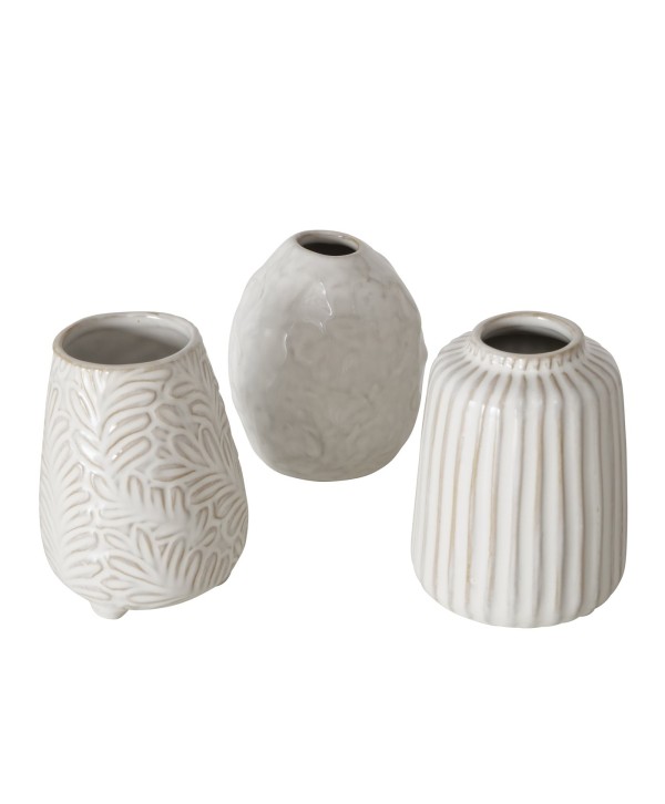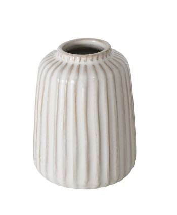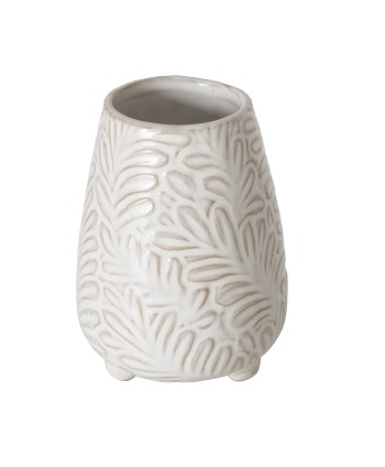 Jarrón de cerámica ORTEGA, en tono blanco y con formas de hojas y rayas en relieve. Ideal para las decoraciones más originales.