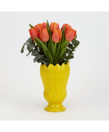 Jarrón de cerámica en tono crema, con 3 asas originales. Jarrón hecho a mano y resistente al agua. Ideal para las decoraciones más originales de tu floristería.