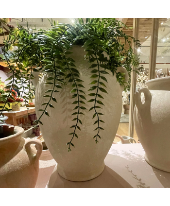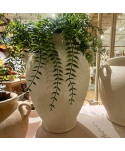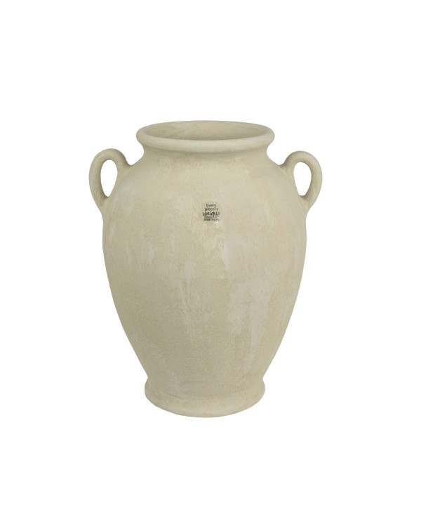 Jarra de cerámica con acabado mate, en tono crema y dos asas. Ideal para las decoraciones más originales. Jarra terracota ideal para floristerías.