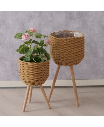 Elegantes Macetas de mimbre Natural con Cubo interior. Ideal para utilizarlos en interior o exterior. Muy ligeros, resistentes al agua y con un agujero para drenar. Proveedor Cestas de mimbre de floristería al mayor. Cesta de mimbre para plantas.