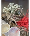 Cesta redonda de yute natural y algas, con decoración en la parte superior. Cestas de floristería. Ideal para centros de plantas, Originales cestas en fibra natural de algas marinas.