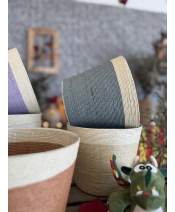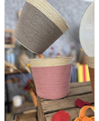 Macetas redondas de papel de rafia bicolor, set de 6 colores distintos. Cestas de floristería con protector de PVC. Ideal para plantas, para macetas de ES15cm.
