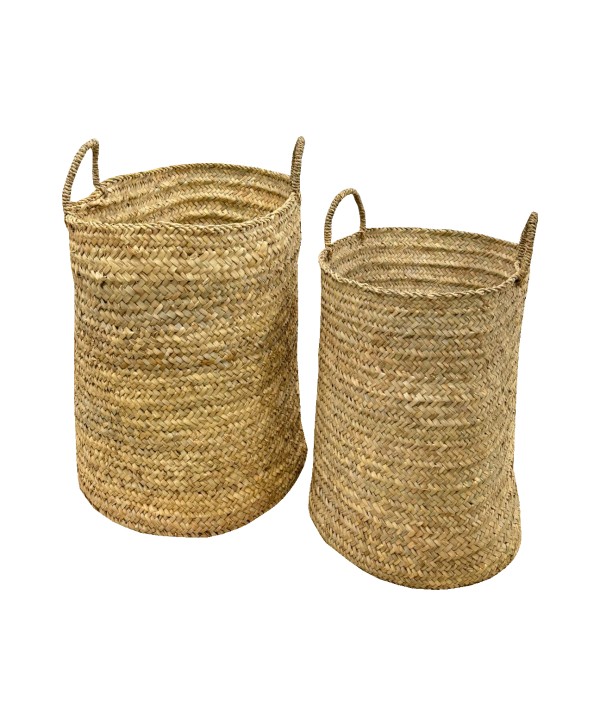 Cestas de fibra natural redondas con dos asas. Ideal para plantas de floristería, decoración de espacios. Juego de 2 unidades, medidas variadas. Proveedores de floristerías y otros comercios. Proveedores al mayor de decoración e interiorismo. Empresa mayorista familiar des de 1902. Empresa de decoración al mayor. Cestas, macetas, envoltorios, jarrones, cintas, estructuras y todo tipo de complementos de decoración. Proveedor Complementos de floristería. Cestas para flores y plantas. Capazo rústico, capazo leñero, capazo de esparto para frutas, verduras, flores y decoración. Capazos al mayor.