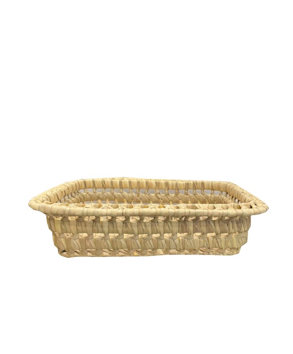 Centro de palma artesanal, hecho a mano, de forma rectangular y acabado rígido. En el capazo, por su elaboración manual, pueden aparecer una serie de imperfecciones que los hacen únicos (No hay dos capazos iguales). Ideal para decoraciones con plantas y flores o para la elaboración de centros de mesa.