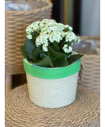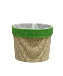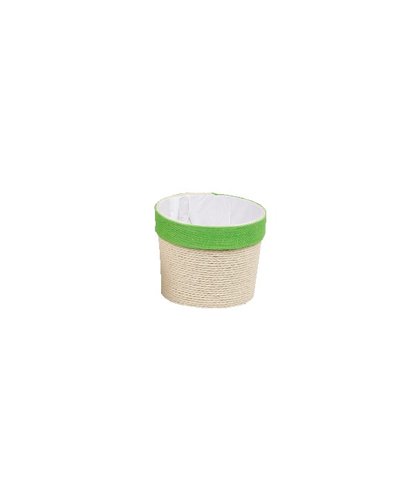 CESTA DE CORDÓN NATURAL Y FRANJA VERDE Ø15 x H13cm.