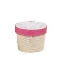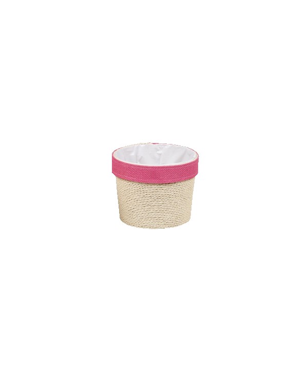 CESTA DE CORDÓN NATURAL Y FRANJA ROSA Ø15 x H13cm.