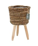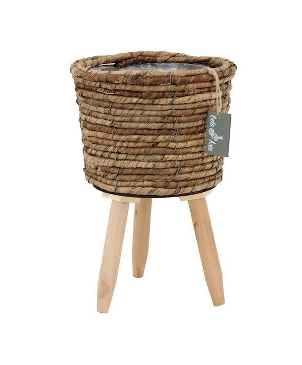 Descripción: Macetero redondo BANANA con patas de madera. Macetero de banana con refuerzo de metal. Ideal para plantas, composición con flores. Cestas de floristería.