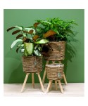 Juego de cestas redondas LENO tejidas a mano, con patas de madera y cuerda de algodón. Macetero de algodón reforzado. Ideal para plantas o composición con flores. Cestas de floristería. Con certificación 100% FSC.