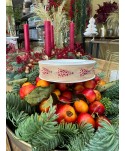 Cinta textil de algodón 100% Natural, de color crema con detalle Barroco en color granate brillante. Extremos reforzados. Cintas navideñas de alta calidad para complementar los regalos, plantas y flores en fiestas navideñas. Proveedores de complementos para floristería y otros comercios. Proveedores de cintas de Navidad de alta calidad. Cintas textiles para envolver regalos de Navidad.