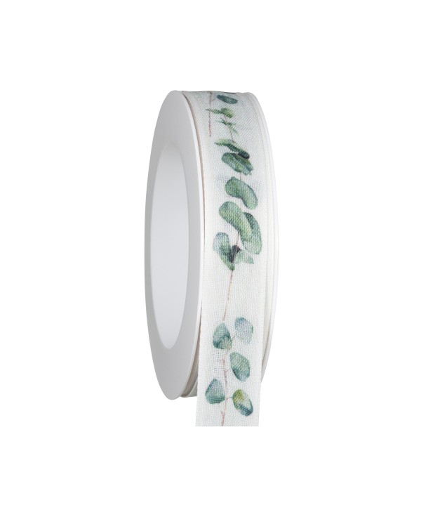 CINTA TEXTIL "EUCALYPTUS" BLANCA Y VERDE 25mm. x 20mts.