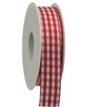 Cinta textil roja con cuadrículas grandes de estilo VICHY, ideal para decoraciones de ramos de flores, bodas, lazos, etc. Proveedores de complementos para floristerías y otros comercios. Proveedores de cintas de calidad decorativas de la mejor calidad.