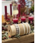 Cinta de algodón efecto saco natural con copo de Nieve de Navidad en Glitter en color rojo. Extremos alambrados. Cintas navideñas textil de alta calidad para complementar los regalos, plantas y flores en fiestas navideñas.