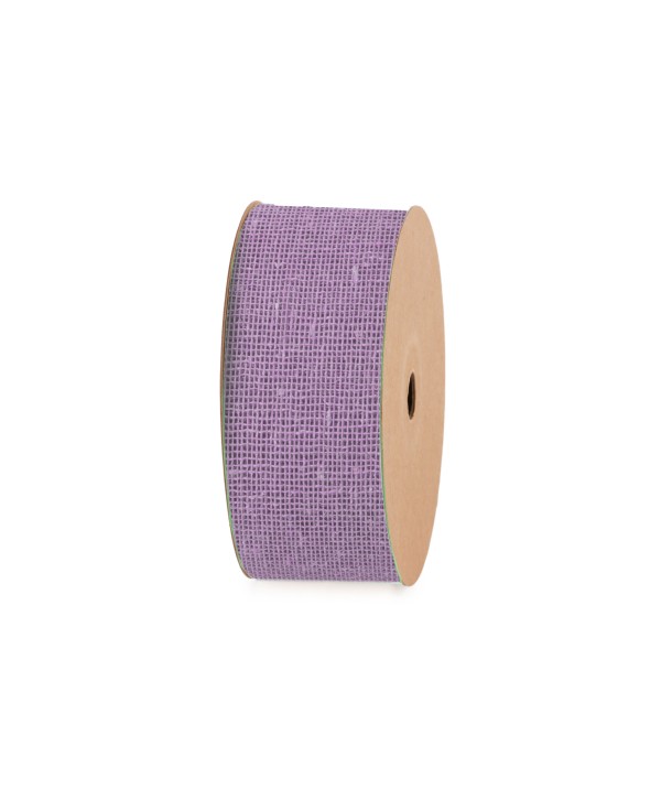 Cinta de SACO modelo RAW LILA. Ideal para composición de ramos en floristerías o decoración de regalos de Navidad. Mayoristas de cintas de alta calidad.