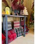 Descripción: Original cojín con diseño de cuadros navideños y relleno incluido. Doble cara lista de color verde. Cojín con margen de pelo sintético. Ideal para decorar espacios: una cama, un sillón o un sofá...
