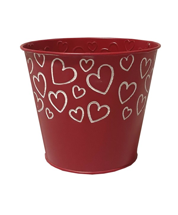 MACETA DE ZINC ROJA CON CORAZONES BLANCOS Ø15 x H13cm.