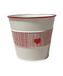 MACETA DE ZINC BLANCA CON CORAZÓN ROJO Ø15 x H13cm.