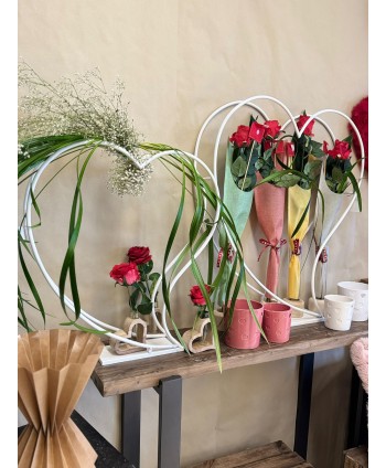 Doble corazón de rosas DÚO en rojo y blanco. La combinación perfecta en un solo producto, la ternura del corazón y la rosa eterna. Es el regalo ideal para las ocasiones más especiales como: San Valentín, Navidad, Día de la Madre, aniversarios, bodas...