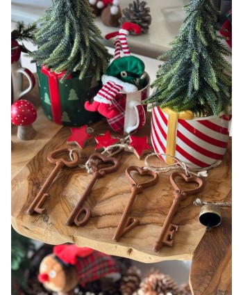 COLGANTE LLAVES "LOVE" CON CORAZONES DE METAL 5,5 x H16cm. (Set 4u.)