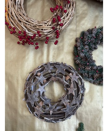 Original Corona en Mimbre Natural. Corona especial para decoración centros Navideños, Corona para decorar la Puerta en Navidad. Complementos decoración de Navidad.