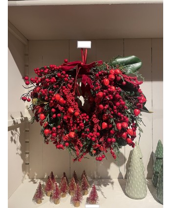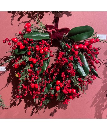 CORONA ARTIFICIAL VERDE CON BERRIES ROJOS Ø40 x H 13cm.