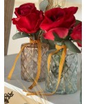 Botella original modelo FLORENCIA, en formato surtido de cristal liso y cristal grabado, de color verde. Proveedor Cristal de floristería, Cristal para Decoración de Bodas, eventos. Botellas de cristal Originales, Botellas decorativas al mayor.