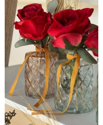 BOTELLA DE CRISTAL CON ROMBOS ROSA Ø 7 x H 10,5cm.