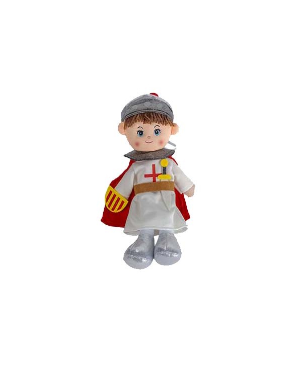 Descripción: Peluche de Caballero de Sant Jordi con escudo bandera. Edición especial para decorar y complementar la Diada de Sant Jordi. Original pareja de princesa y Sant Jordi para el escaparate del día de la rosa y el libro.