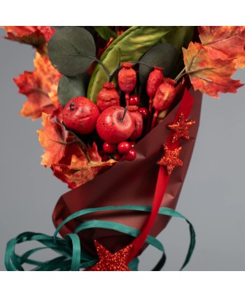 Papel de regalo rojo con diseño de ELEMENTOS NAVIDEÑOS DORADOS, A DOBLE CARA, con cara interior en color DORADO. Envoltorios para el comercio y floristería. Proveedor Papel de Regalo. Envoltorios para el comercio, floristería, flores, plantas, lote de regalos.