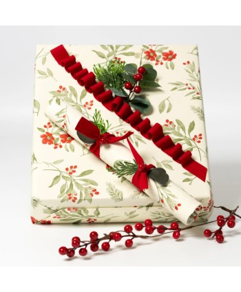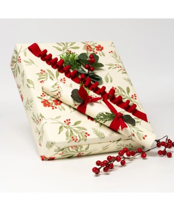 Descripción: Bobina de papel de regalo con diseño de flores rojas y verdes, con el fondo crema. Envoltorios para el comercio y floristería. Papel para regalo de San Valentín o el Día de la madre. Papel de regalo para la persona más especial. Papel de regalo y celofán al mayor. Papel de San Valentín.