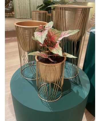 MACETA DE ZINC REDONDO DORADO Ø25 x H 51cm. (Set 3u.)